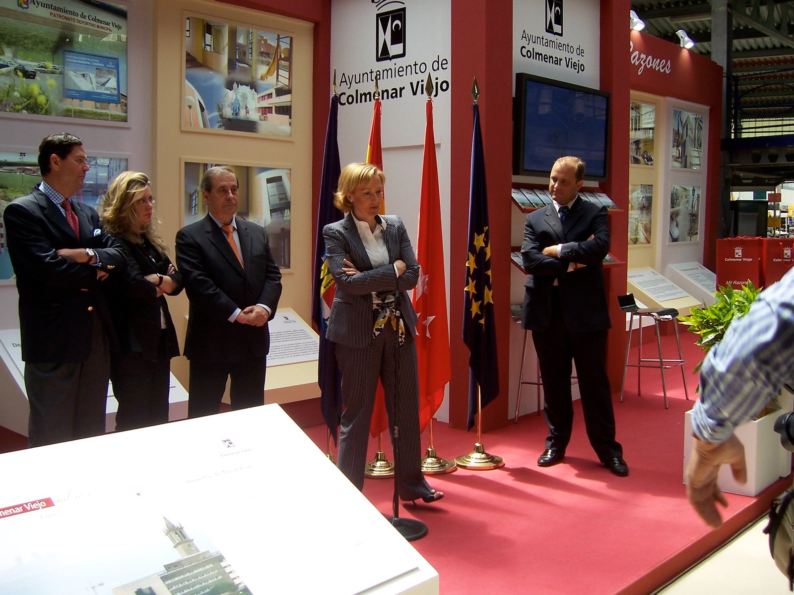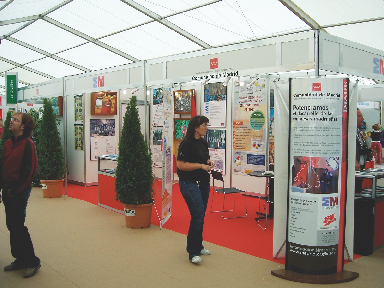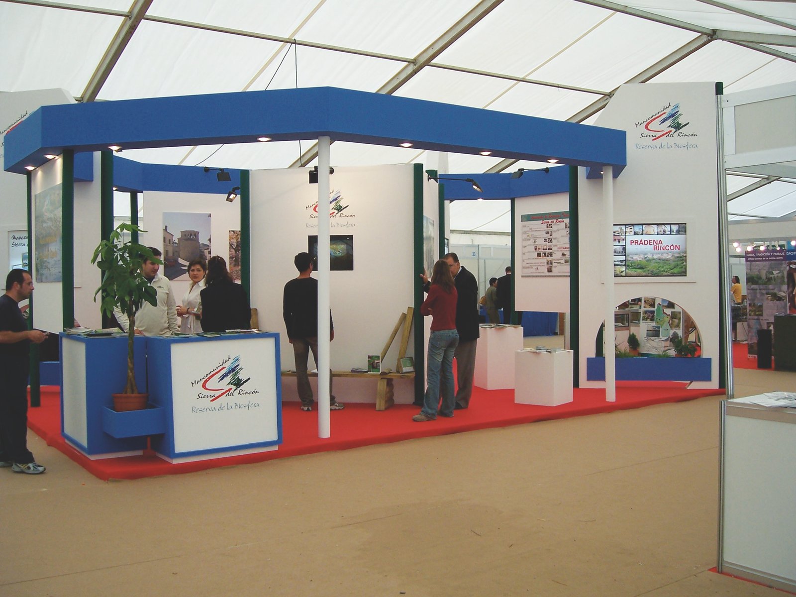 3 espacios diferentes en un área irregular de 100m2, abiertos al público, con continuidad de estilo, pero respetando su propia personalidad: el stand institucional del municipio anfitrión, un área independiente, la de la contrata del área de servicios de limpieza, un plan de difusión de tecnologías web perteneciente al Plan Avanza. En el caso de éste último la instalación sirvió como auditorio para la presentación del proyecto a la prensa, en el caso de los servicios de limpieza (CESPA) contemplaba la celebración de talleres infantiles de reciclado, en el caso del ayuntamiento, sin duda uno de los más visitados de la feria, se planteó una construcción vanguardista que rompía con la tradición de representar a la institución con aire anticuado. Propusimos diferentes y atractivos contenidos: la memoria emocional del municipio a través de una exposición fotográfica, un paseo que permitía presentar el municipio como ciudad moderna y equipada al visitante y una exposición de piezas de alto interés arqueológico. En el centro de todos los tres stands sobresalía una columna con el escudo municipal.