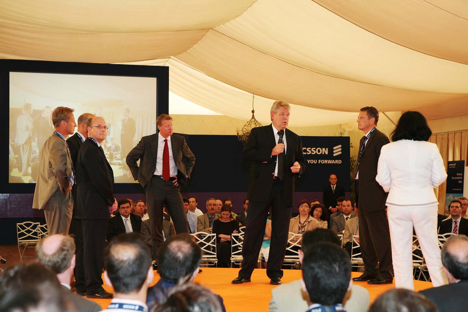 ¿Cómo seducir a una audiencia muy informada de que algo tan poco emotivo como la convergencia multimedia-teléfono móvil puede ser, además de un reto empresarial, una experiencia plena para los sentidos? ¿Cómo ennoblecer el trabajo cotidiano de una plantilla vinculándolo a una misión, como es esta de la convergencia tecnológica? Nuestra propuesta fue seducirles a través de una puesta en escena ambiciosa y a la altura del auditorio donde se combinaban los mensajes y los sentimientos. Construimos una videoperformance a 3 pantallas, con un cuerpo de 10 bailarines y una iluminación espectacular… Comenzaba con una voz en off “La evolución no es ningún sueño…” Y terminaba “tal vez seamos el primer habitante de este planeta que fabricará una inteligencia o ser artificial destinado a sucederle” mientras oíamos de lejos a Hal, el ordenador enloquecido, de Una odisea del espacio. Seguro que los asistentes no la han olvidado.